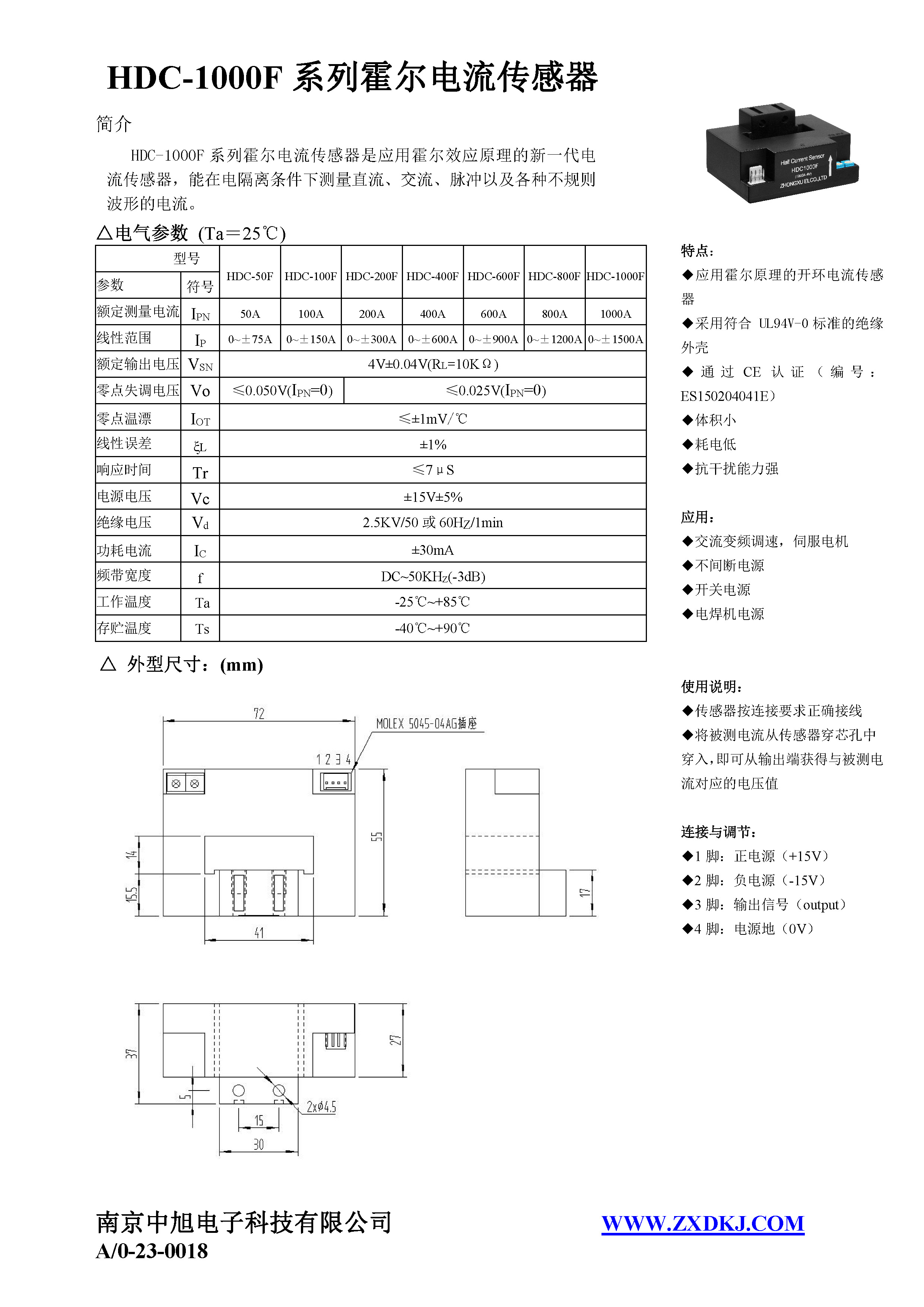HDC-1000F系列霍爾電流傳感器是應用霍爾效應原理的新一代電流傳感器,能在電隔離條件下測量直流、交流、脈沖以及各種不規(guī)則波形的電流。