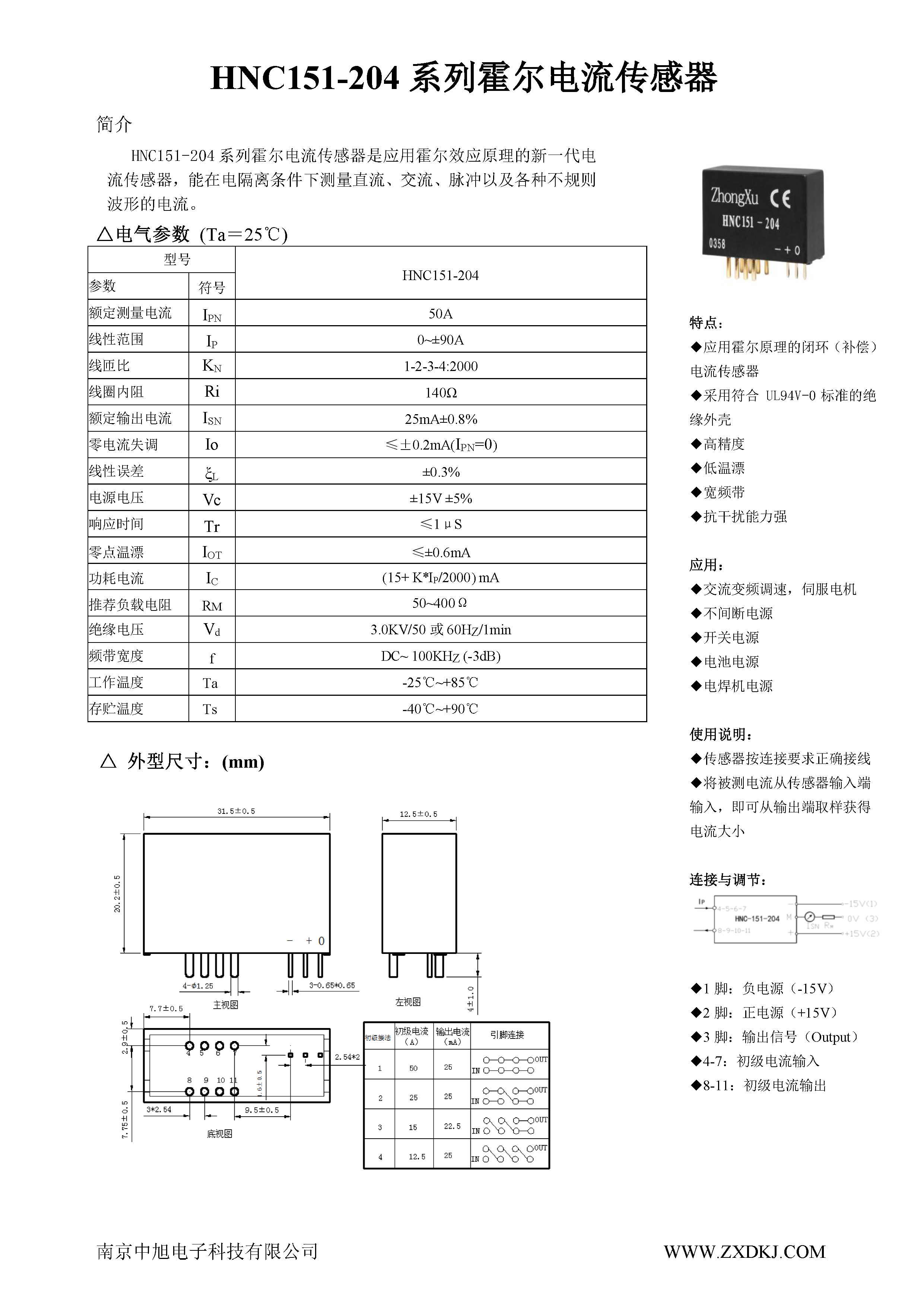 HNC151-204系列霍爾電流傳感器是應(yīng)用霍爾效應(yīng)原理的新一代電流傳感器,能在電隔離條件下測量直流、交流、脈沖以及各種不規(guī)則波形的電流。